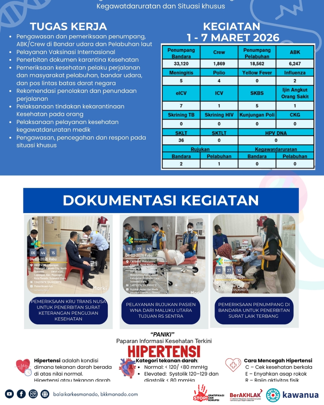 Balai Kekarantinaan Kesehatan Kelas I Manado kembali melaksanakan Monday Morning Briefing (MMB) yang diikuti oleh seluruh pegawai, baik di Kantor Induk maupun Wilayah Kerja (secara daring melalui Zoom)