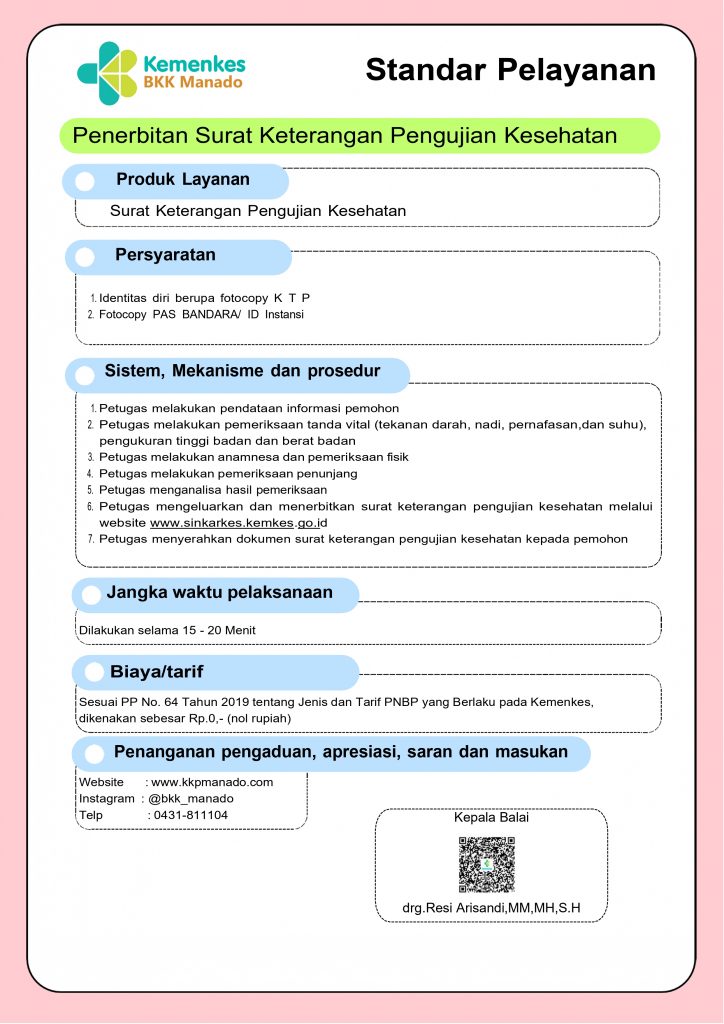 STANDAR PELAYANAN PENERBITAN SURAT KETERANGAN PENGUJIAN KESEHATAN PENERBITAN SURAT KETERANGAN PENGUJIAN KESEHATAN